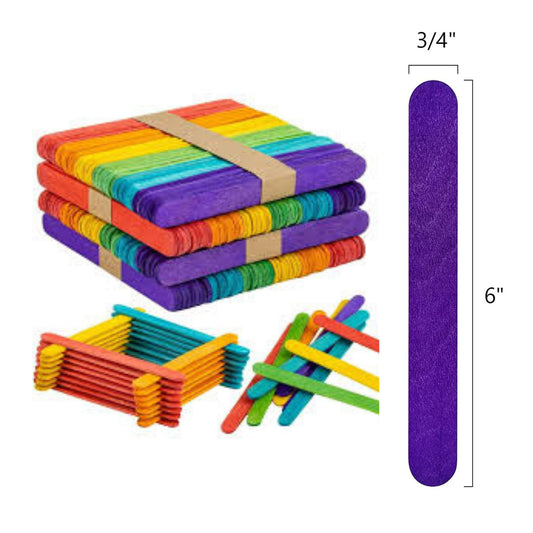 6" Incraftables 6 Vibrant Color Popsicle Craft Sticks – 50 pcs