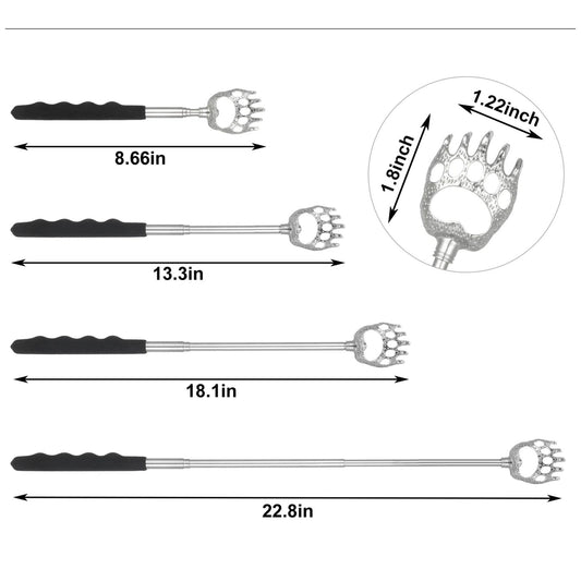 Back Scratcher – Telescopic Stainless Steel Bear Claw, 8–22 Inch:1CT