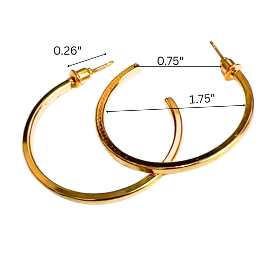1.75" Open Hoop Gold Earrings with Push-Back Post for Women: 1-Pair