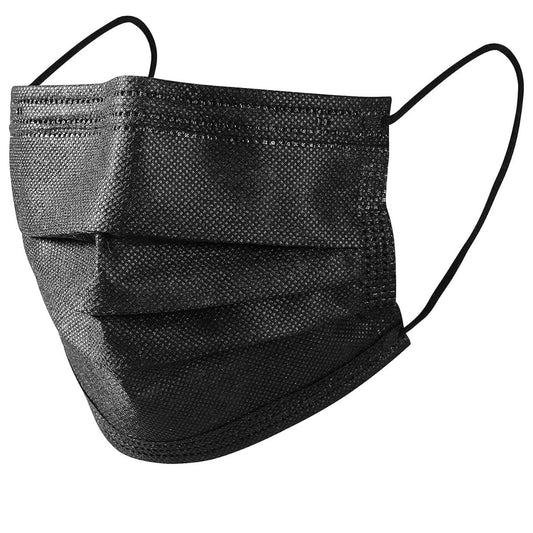 Disposable Black 3-Ply Face Masks with Elastic Earloops: 10CT