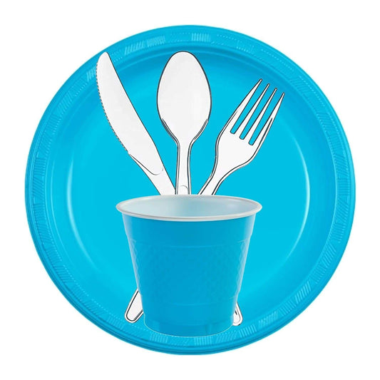 Island Blue Round Plastic Plate 7" : 15 count