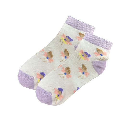 Kids Soft & Stretchy & Comfort Fit Flowery Purple Kids’ Ankle Socks: 1Pair