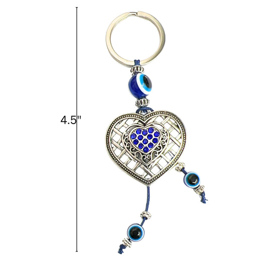 Rhinestone Blue Heart & Evil Eye Keychain – Eye-Catching Charm: 1CT