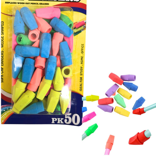 Wedge Shape Cap Erasers Replaces Worn-Out Pencil Erasers: 50CT