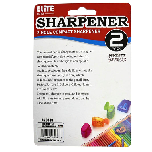 2-Hole Compact Dual Size Pencil Sharpeners: 2CT