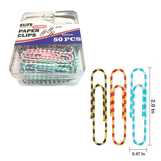 2" Striped Colored Paper Clips Assorted Sizes Metal Coated: 50CT