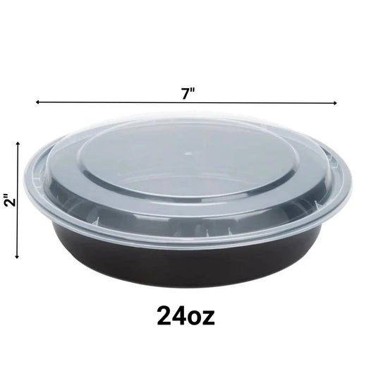 24oz Black Meal Prep/ Bento Box Disposable Round Container with Clear Lid: 3CT
