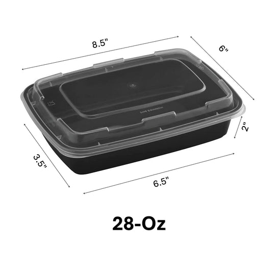 28oz. Black Rectangular Meal Prep / Bento Box Containers with Lids: 3CT