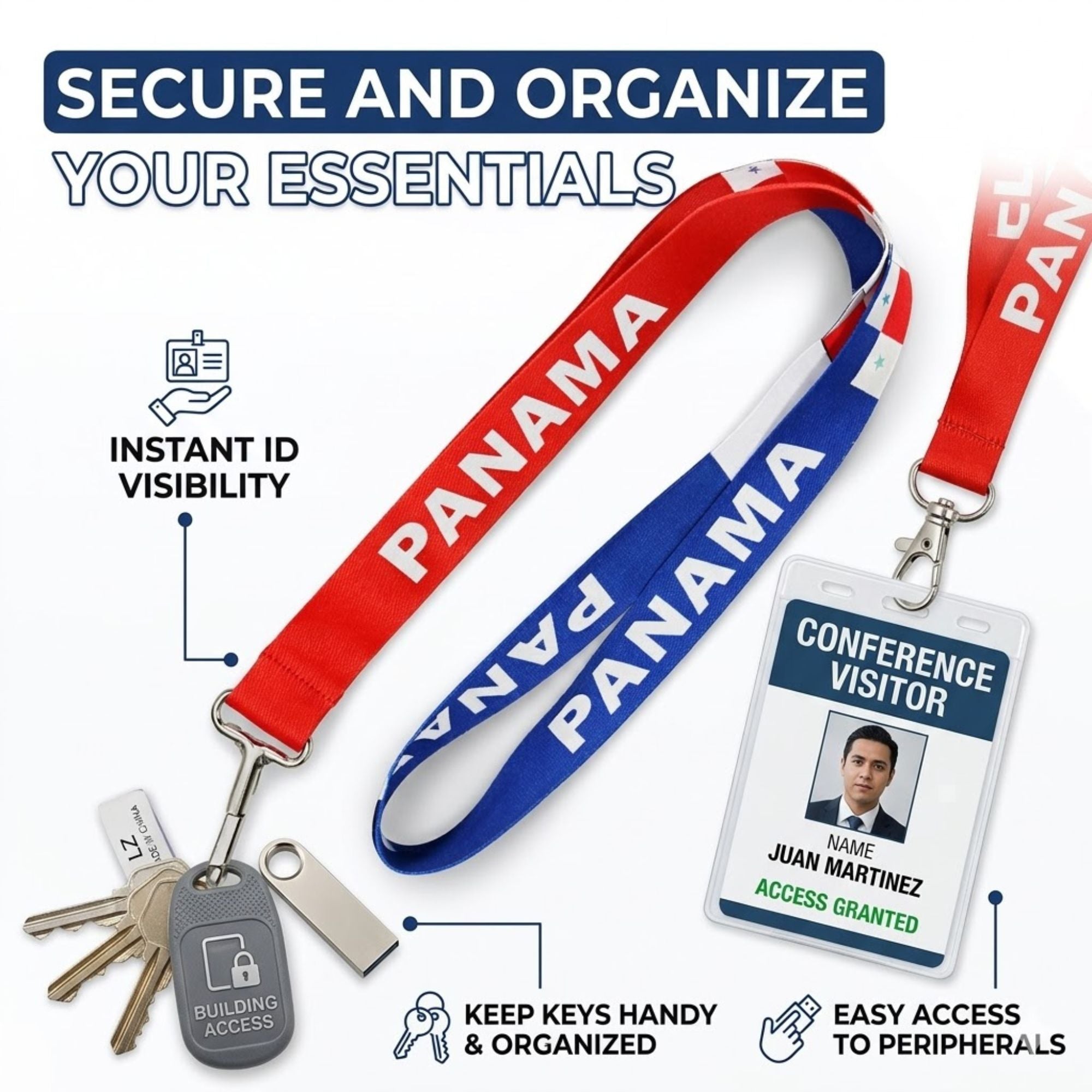 Showcase your love for Panama with this premium flag lanyard. Designed with the iconic red, blue, and white colors, this 18-inch neck strap is perfect for any proud Panamanian. The high-quality polyester fabric is smooth to the touch, ensuring comfort even during long hours at the office, a conference, or a national festival.