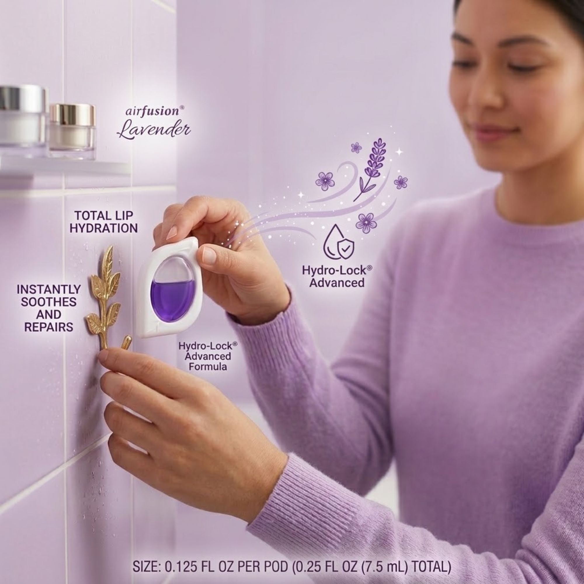 The 7.5 ml 2 pack is compact and convenient, making it easy to place in various areas such as bathrooms, bedrooms, cars, closets, or workspaces. Whether you want to freshen the air after cooking or simply maintain a pleasant environment, Air Fusion Lavender Air Freshener provides a simple and effective way to keep your surroundings smelling clean and inviting.