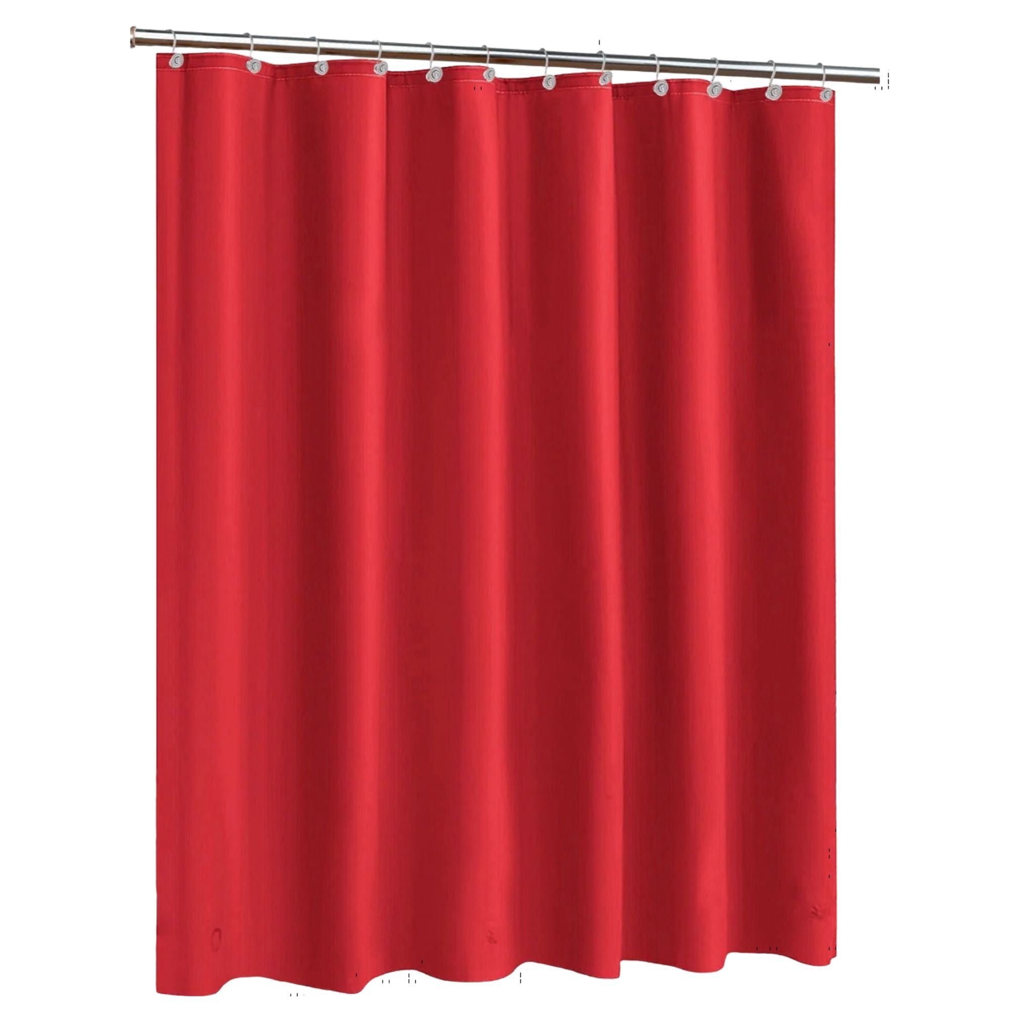 Upgrade your bathroom with this durable and reliable 70 x 72 inch heavy-duty PVC shower curtain liner in a bold red color. Designed to provide superior waterproof protection, this liner helps keep water inside the shower while protecting your decorative curtain and bathroom floors. The reinforced header with 12 rust-resistant metal grommet holes ensures secure hanging and long-lasting performance, making it ideal for daily use in homes, apartments, dorms, hotels, and guest bathrooms. Easy to clean and maintain, this liner offers both functionality and a vibrant look that adds a pop of color to your bathroom décor.