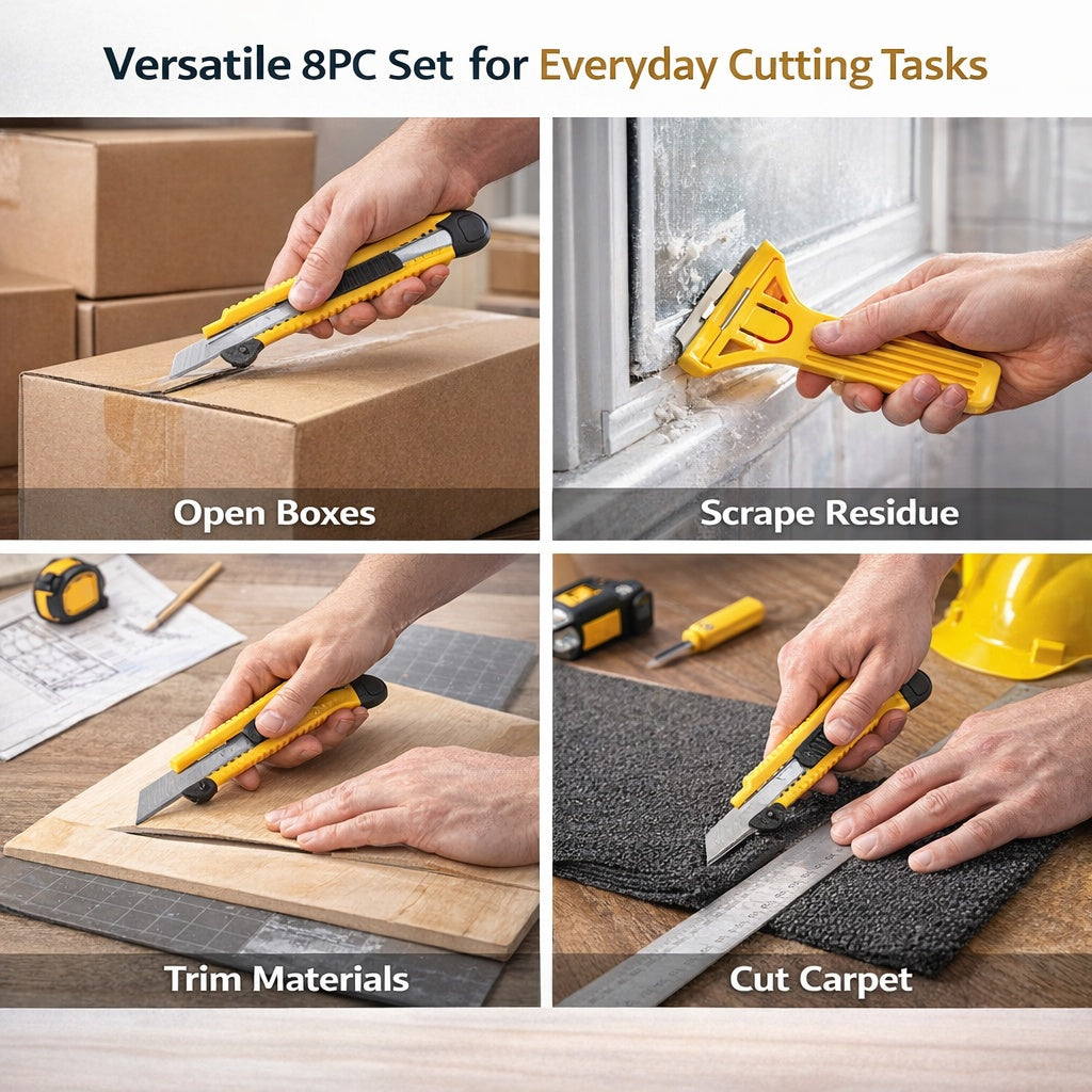 - 8 Piece Tool Set: Includes scrapers and utility knives for multiple tasks