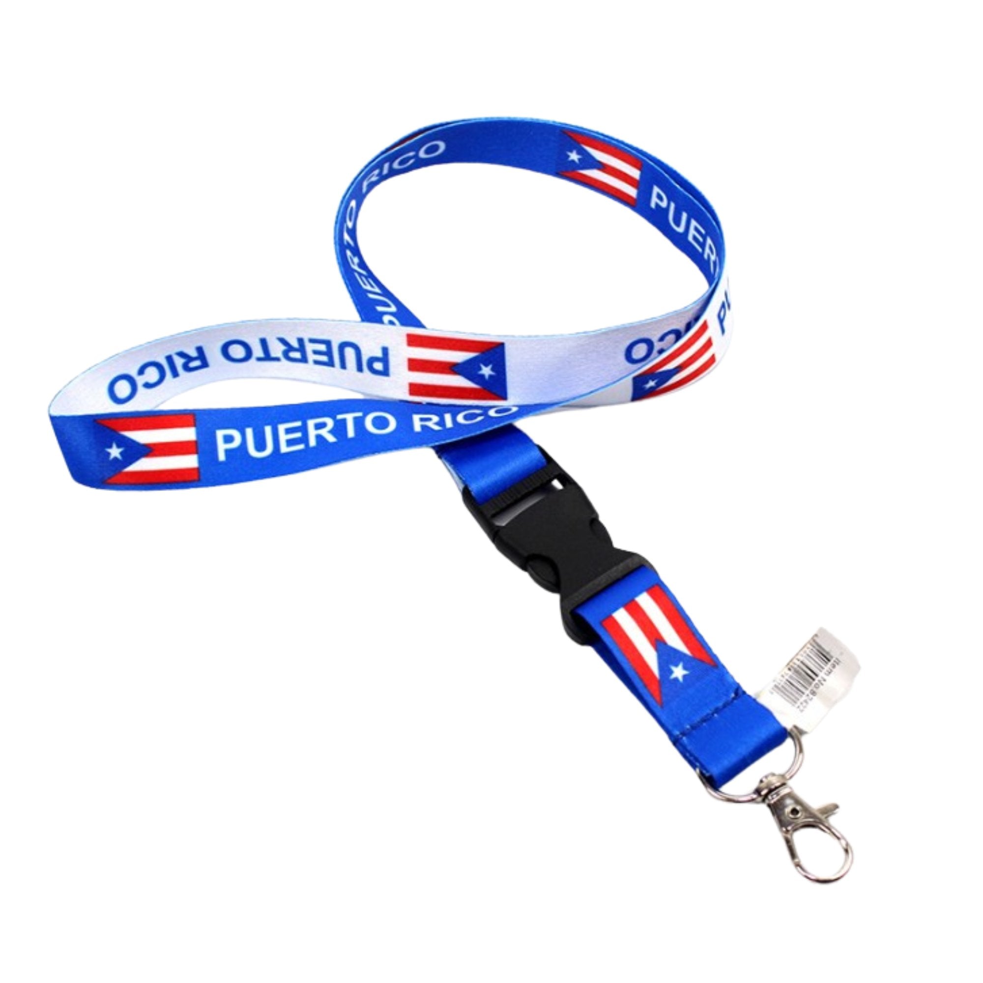 Celebrate your Puerto Rican pride with this vibrant Puerto Rico Flag Lanyard Keychain. Featuring the iconic red, white, and blue flag design, this lanyard includes a quick-release buckle and a strong metal clip, perfect for carrying keys, ID cards, or small accessories securely and comfortably.