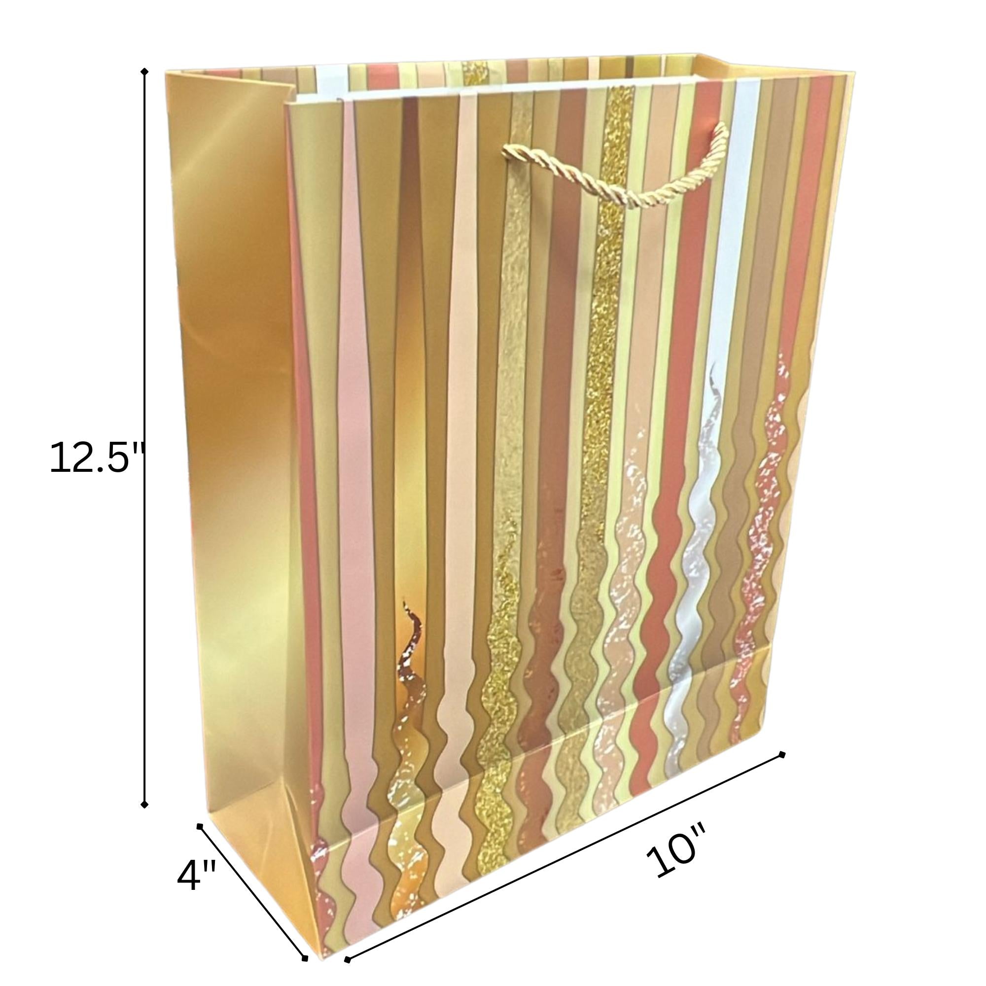 Elevate your gifting with this chic Sparkly Geometric Waves gift bag. Featuring a contemporary wave pattern in iridescent foil and glitter accents, it adds a touch of modern elegance to any occasion. Perfect for birthdays, weddings, or everyday surprises—durable and reusable for lasting style.