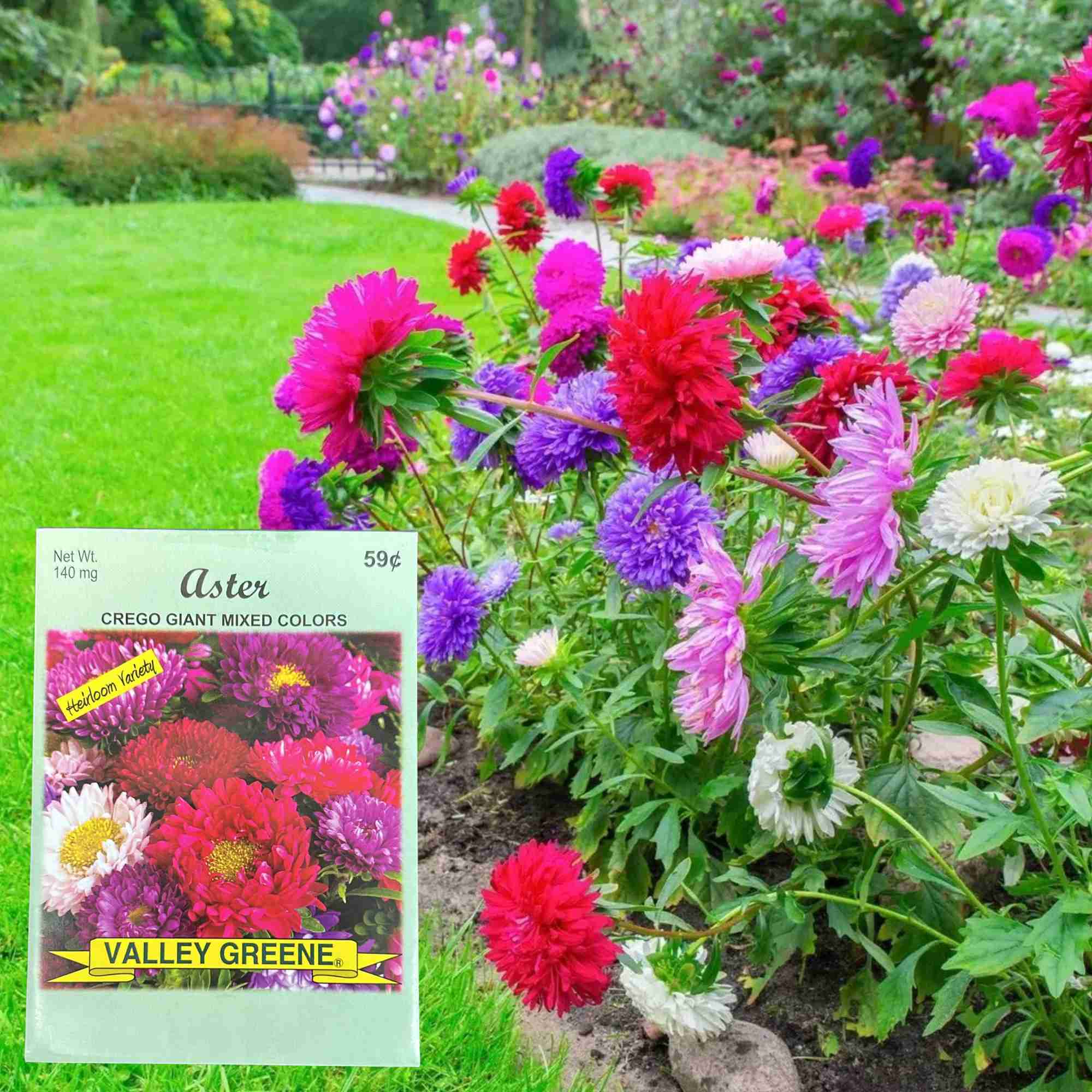 - Aster Crego Giant variety – vibrant mixed color blooms