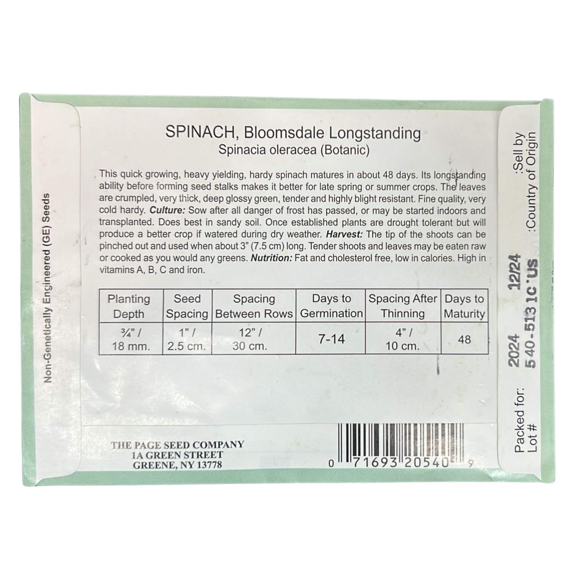 Valley Greene 1G Spinach Bloomsdale Longstanding:2CT