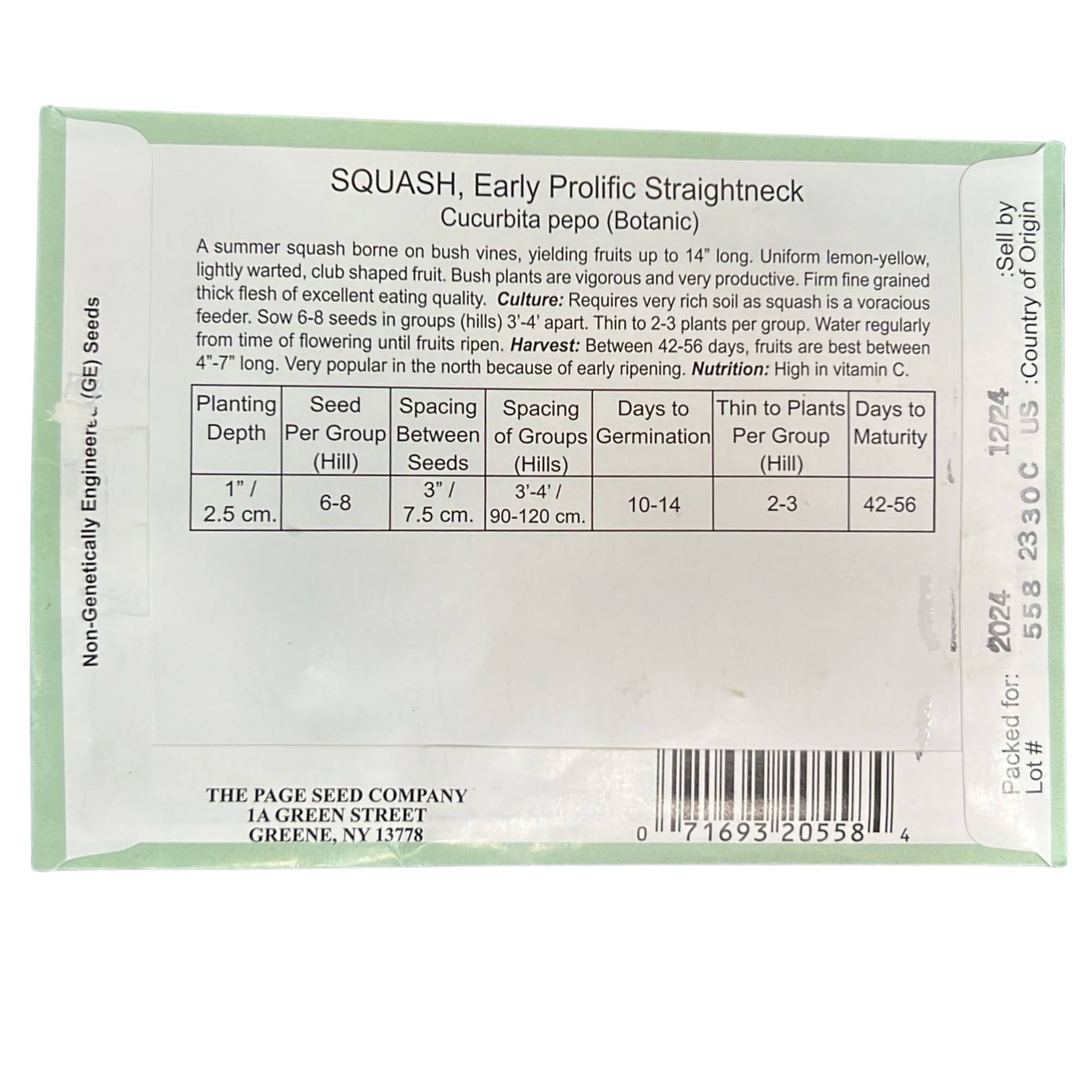 Valley Greene Early Prolific Straightneck Squash seeds produce tender, flavorful squash. Germinates in 10–14 days and matures in 42–56 days, perfect for early summer harvests.