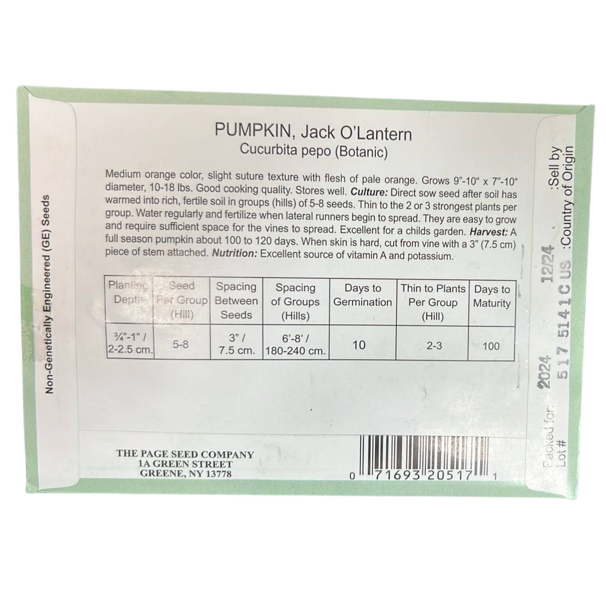 Jack O'Lantern Pumpkins are a classic Halloween favorite, known for their smooth, deep-orange skin and perfect shape for carving. This variety produces medium-sized pumpkins with strong, sturdy stems and sweet, fine-grained flesh that can also be used for cooking. With a germination time of around 10 days and a maturity of approximately 100 days, these pumpkins are ideal for fall harvests and festive displays.