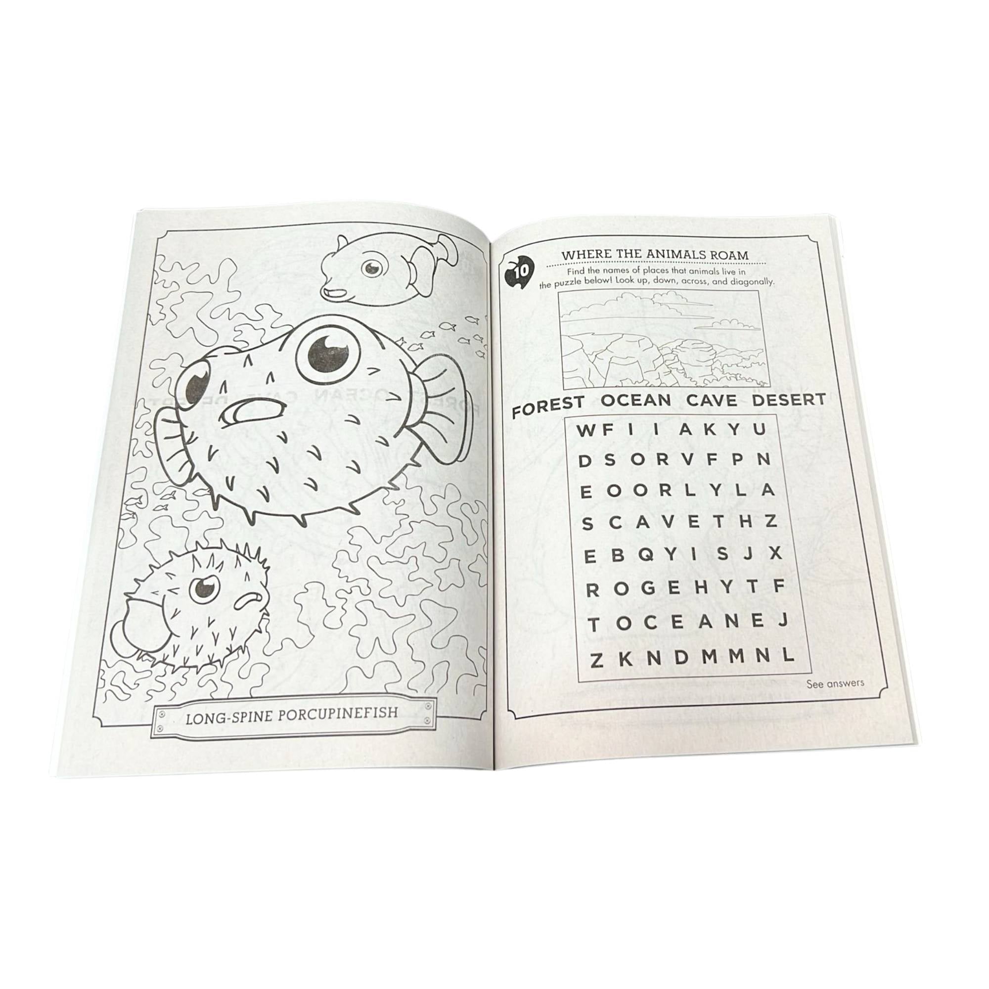 - Over 50 unique pages of coloring, puzzles, mazes, dot-to-dot, matching games, and fun facts