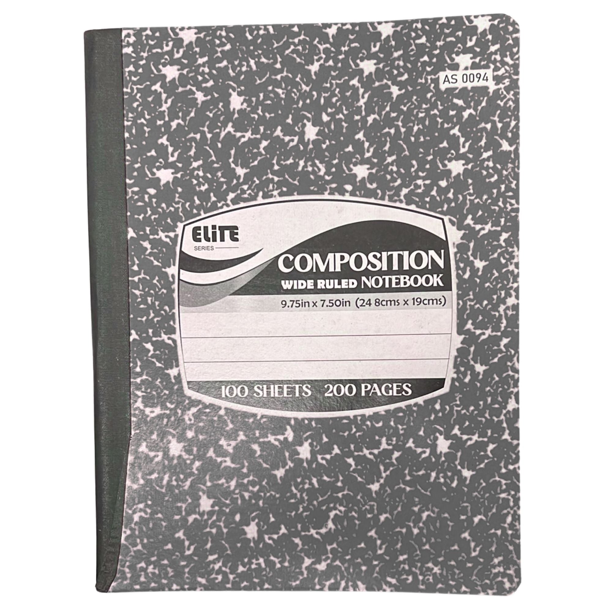 Stay organized and ready to write with this classic Composition Wide Ruled Notebook. Measuring 9.75" x 7.5", it features 100 wide ruled sheets (200 pages front and back)—perfect for school, journaling, note-taking, or everyday writing tasks. The sturdy sewn binding keeps pages securely in place, while the durable cover protects your notes from wear and tear. Ideal for students, professionals, or anyone who prefers a clean, spacious layout for writing.