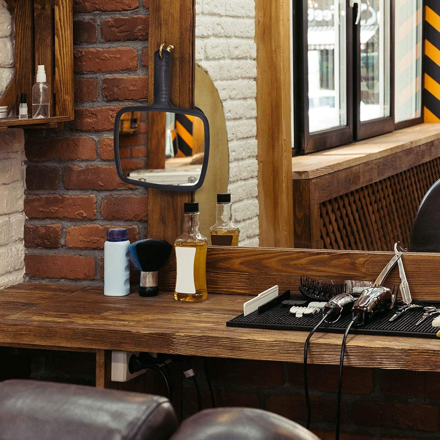 1X Regular mirror: single-sided glass mirror without magnification, without distortion. Large Display: 6.3" x 58.7" 2-Way Design: The mirror can be hung or handheld, it is excellent for shaving. Regular Black Color Shape: Classic black color and modern rounded rectangle shape.