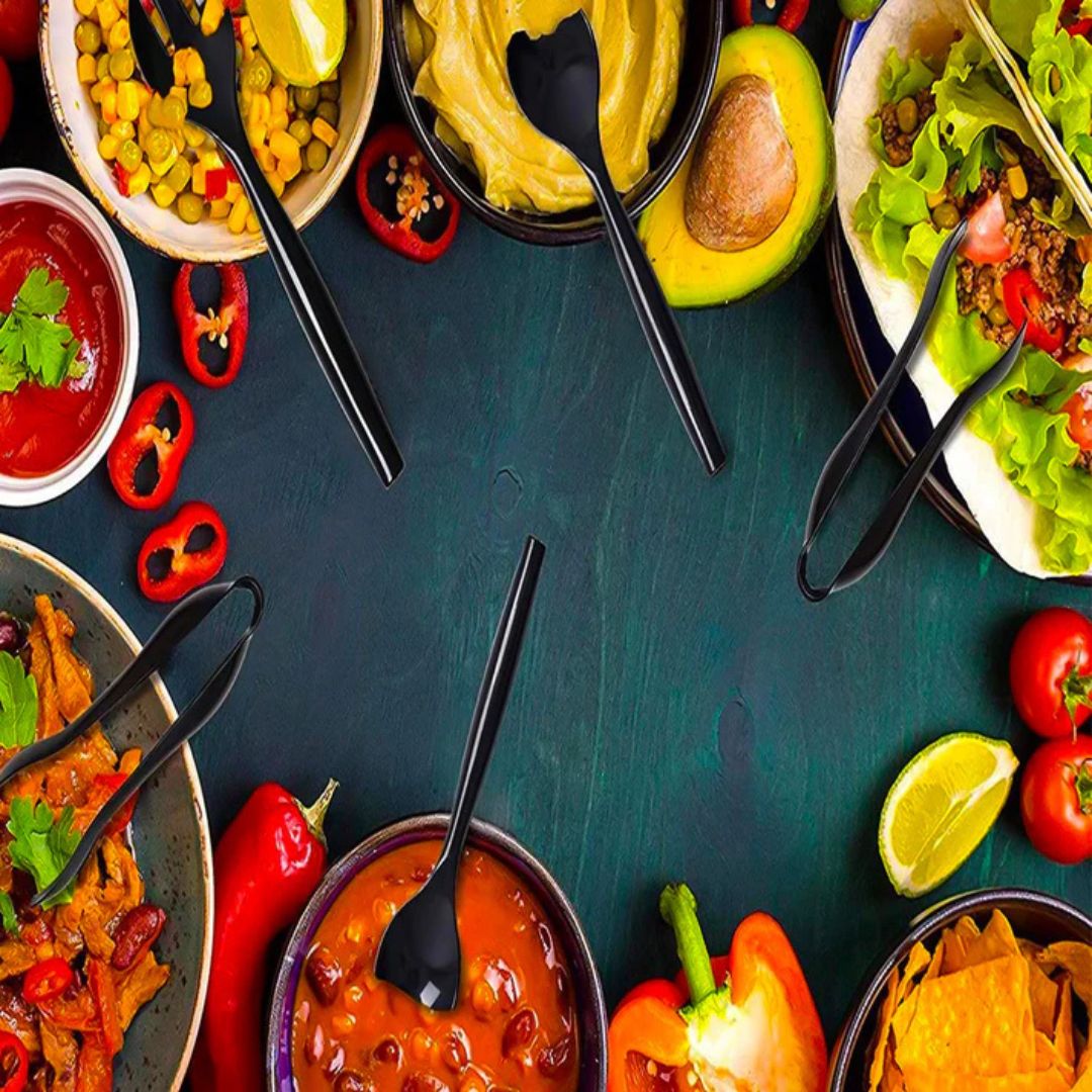 Plastic Serving Utensils, Heavy Duty Black Disposable-COMBO - 3CT
