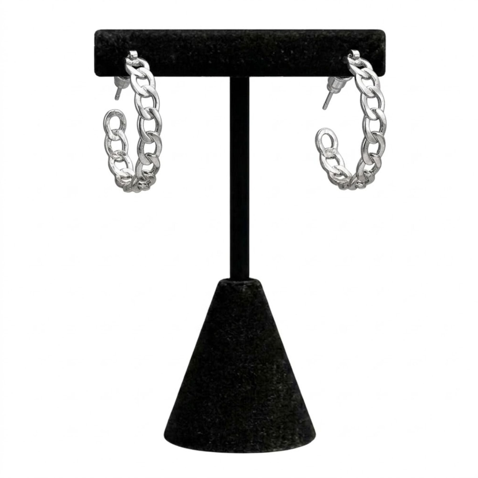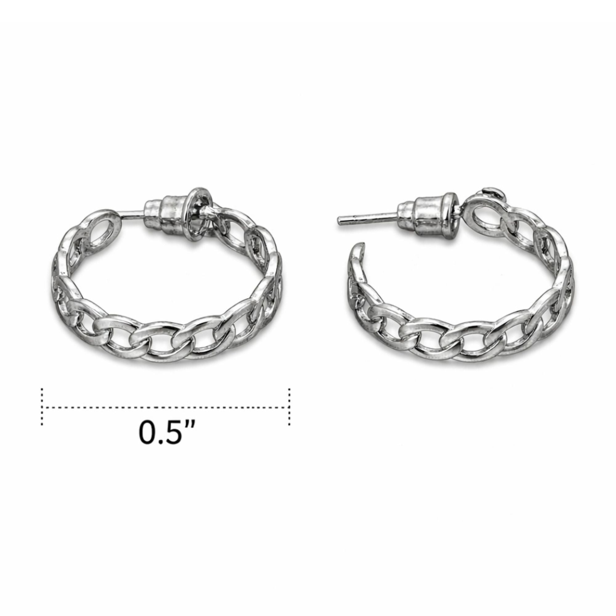 Apne rozana ke style ko behtar banane ke liye ye silver chain link hoop earrings ek behtareen intekhab hain. Inka unique curb chain design modern aur edgy look deta hai jo har tarah ke outfit par suit karta hai. Inka 0.5 inch ka size inhe comfortable banata hai taaki aap inhe poora din bina kisi pareshani ke pehen sakein aur stylish dikhein.