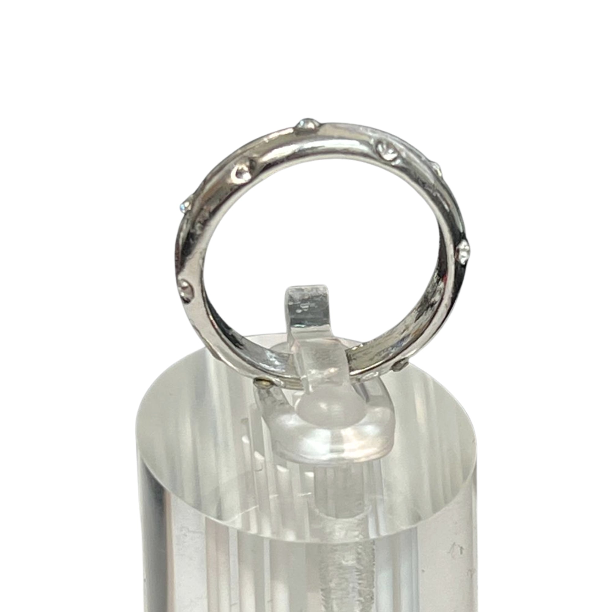 This sleek and elegant sterling silver ring features a simple yet stunning design, perfect for daily wear or adding a touch of sparkle to any outfit. With its polished finish and delicate embellishments, this piece can be worn alone or stacked with other rings for a fashionable layered look. Its timeless design makes it an ideal addition to any jewelry collection.